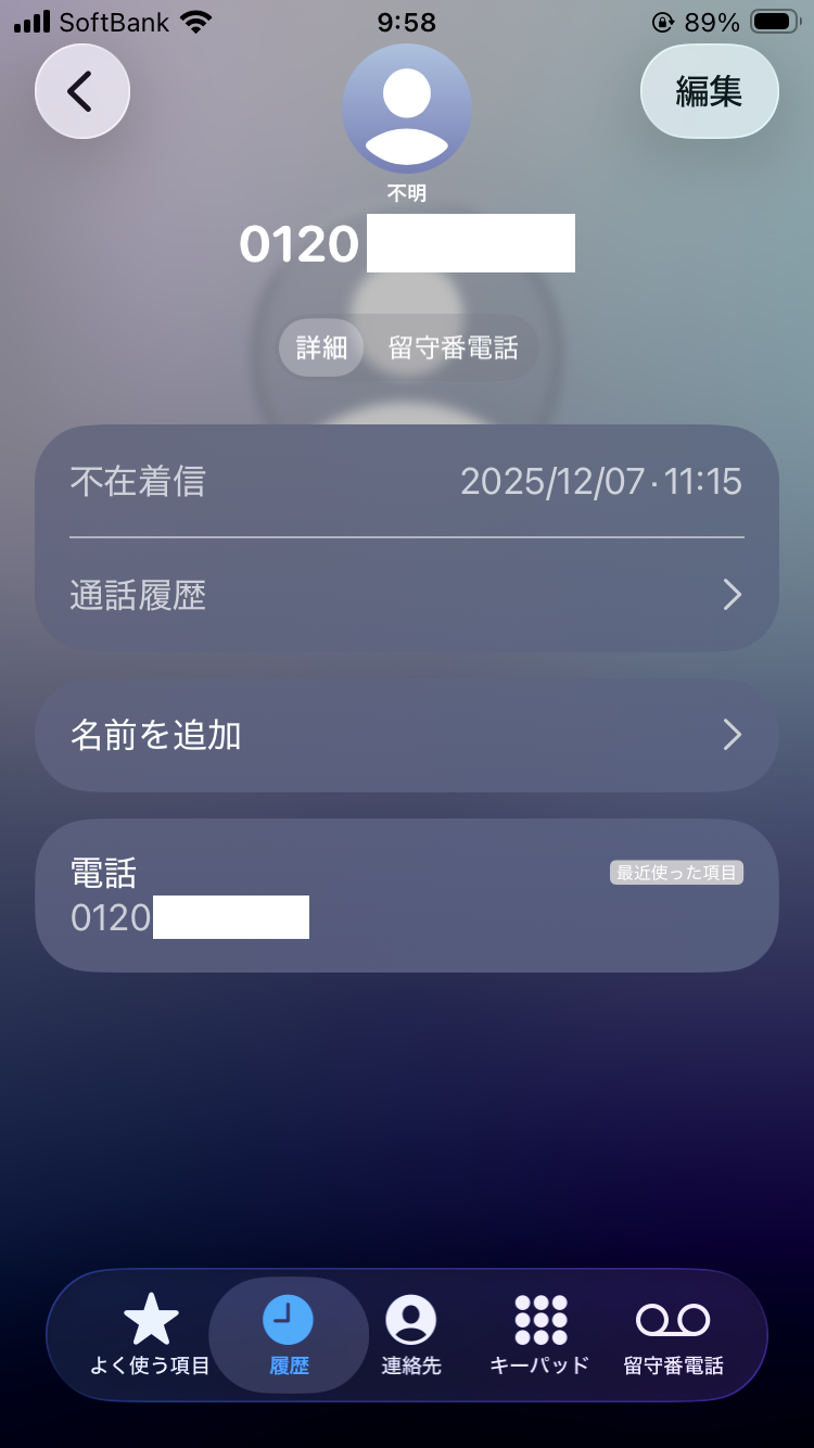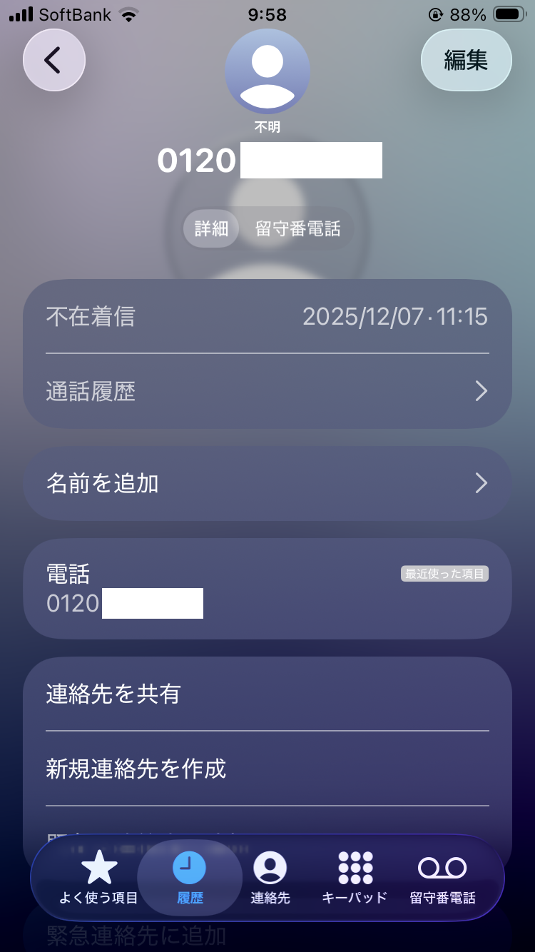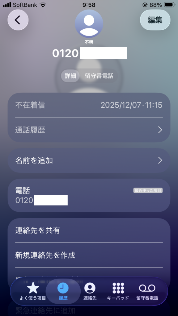 iPhone SE シリーズ と iOS 26 で迷惑電話のブロックが設定できない時の対応方法 2025/12/20 Apple 画面の大きい iPhone では起こらないので、早く直してほしいんですけどねぇ… iPhone SE で電話の履歴を開いても迷惑電話のブロックが出来ない なぜか表示されている項目が少なく、ブロック操作が出てきません… 迷惑電話のブロックを設定するには? 一度、ホームボタンを押してホームに戻り、再度電話を立ち上げるだけ。 下部に項目が出てくるようになり、迷惑電話のブロックも選べます。 これ意外と不便です。バグですよね…Appleさん👀